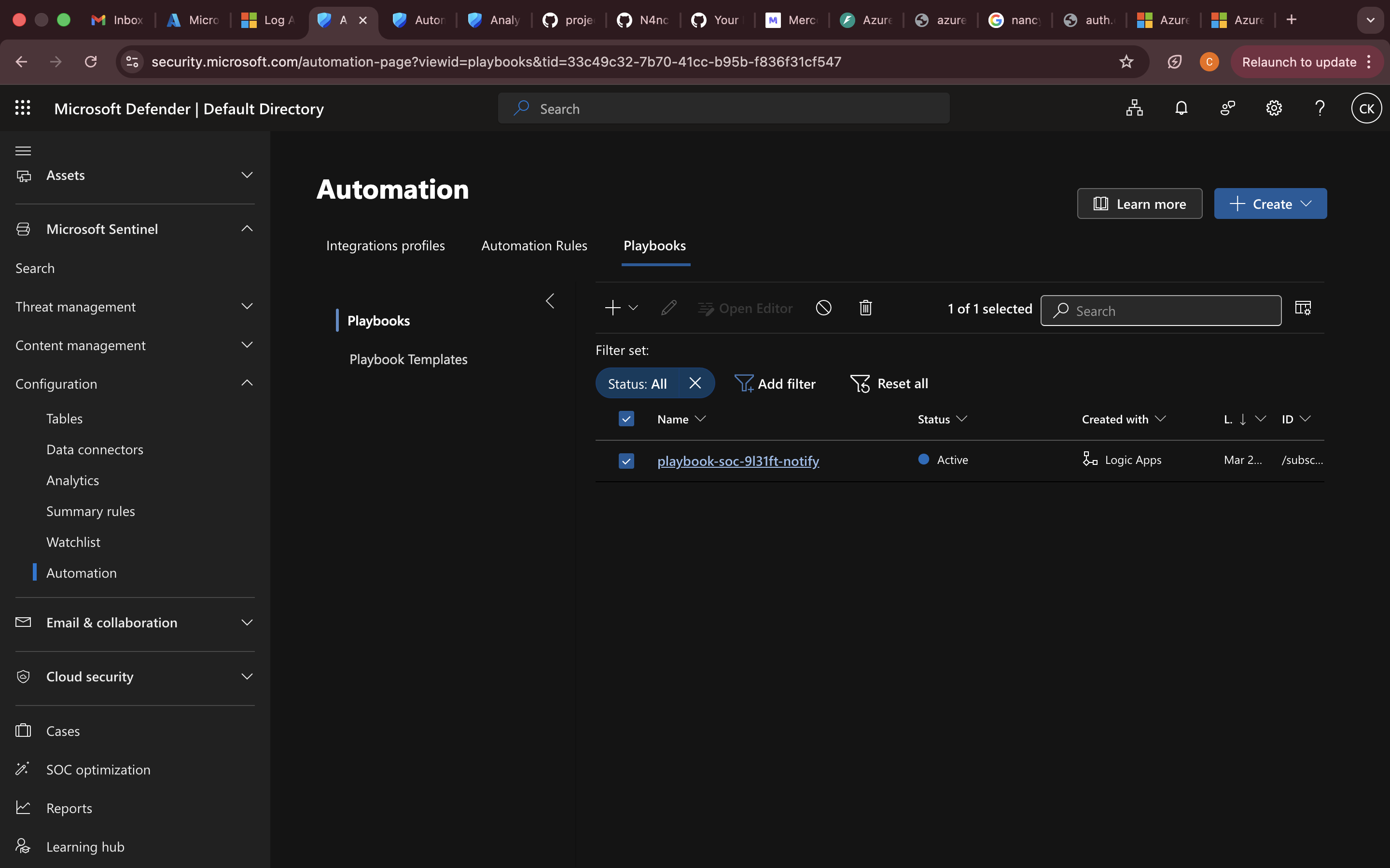 ### 自动化响应 — Logic App Playbook