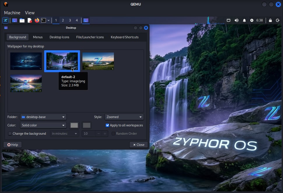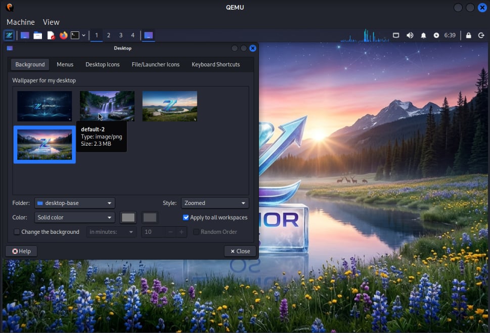 **Zyphor OS** 是基于 **Kali Linux** 和 **Debian** 构建的定制 Linux 发行版。