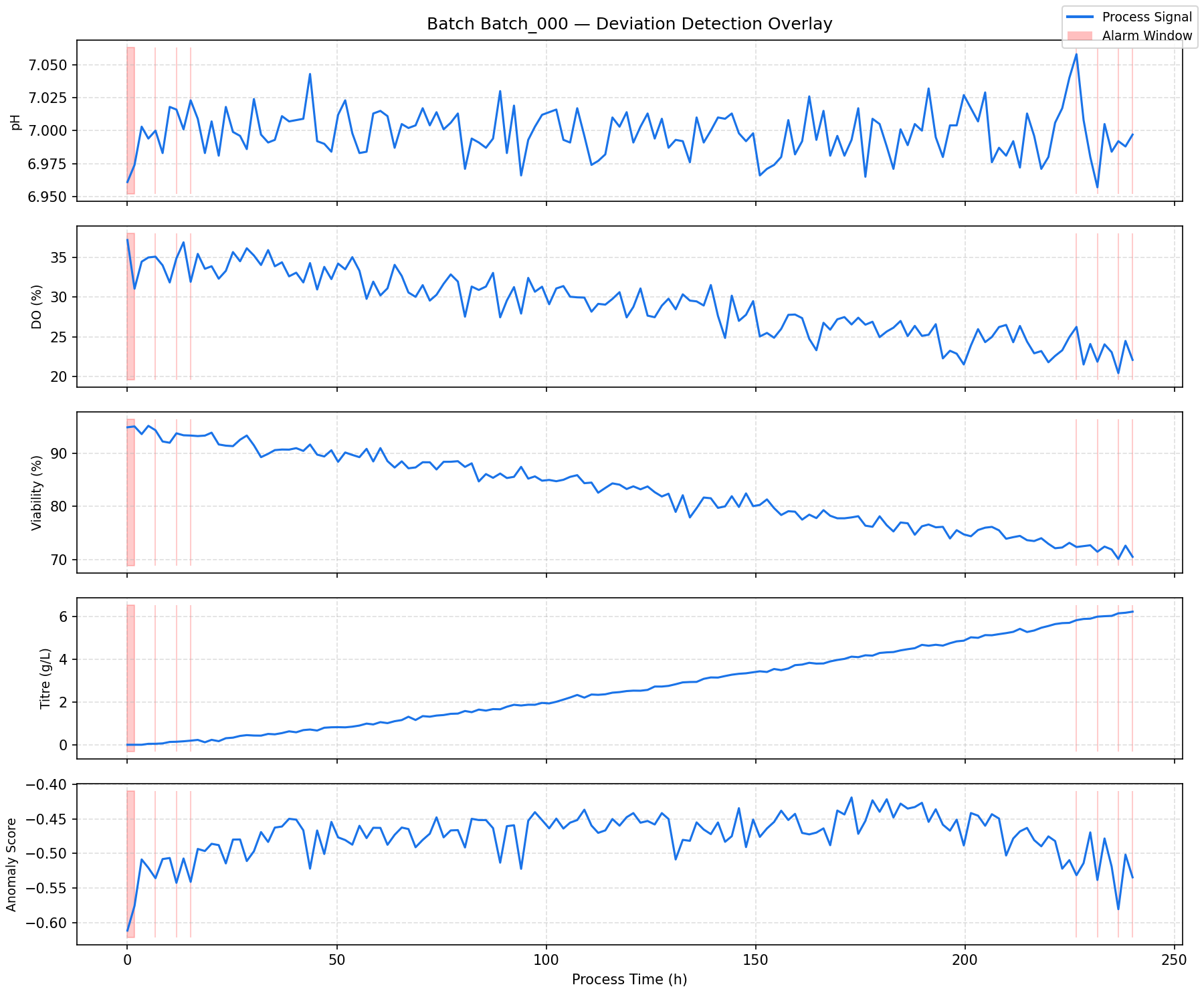 - 在约 15% 的批次中注入偏差场景(pH 漂移、DO 骤降)