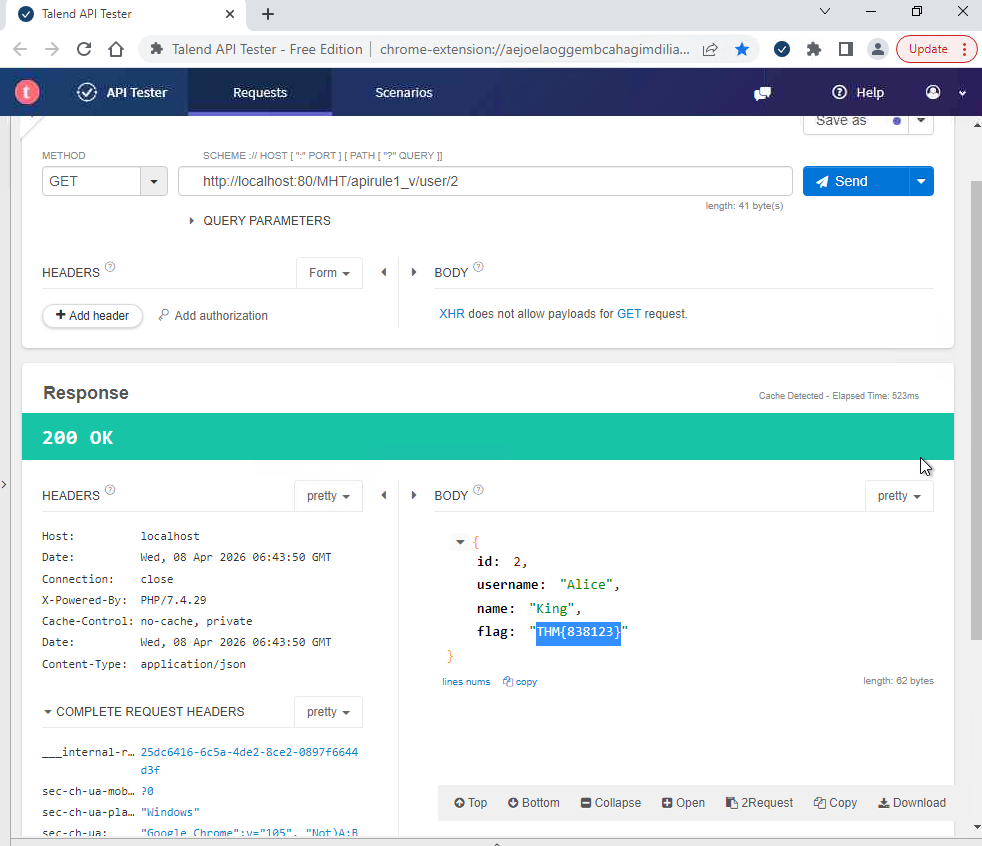 标签:API安全, BOLA, Broken Object Level Authorization, Broken User Authentication, ID枚举, JSON输出, Laravel, OWASP Top 10, StruQ, Talend API Tester, TryHackMe, Walkthrough, Windows VM, 安全修复, 实战演练, 数据展示, 未授权访问, 渗透测试教程, 漏洞复现, 红队, 网络安全, 网络安全审计, 越权访问, 身份认证绕过, 隐私保护