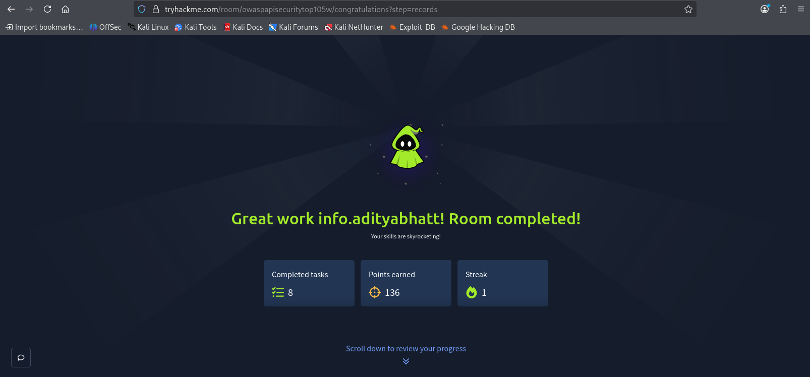 GitHub: AdityaBhatt3010/OWASP-Top-10-API-THM-Part-1