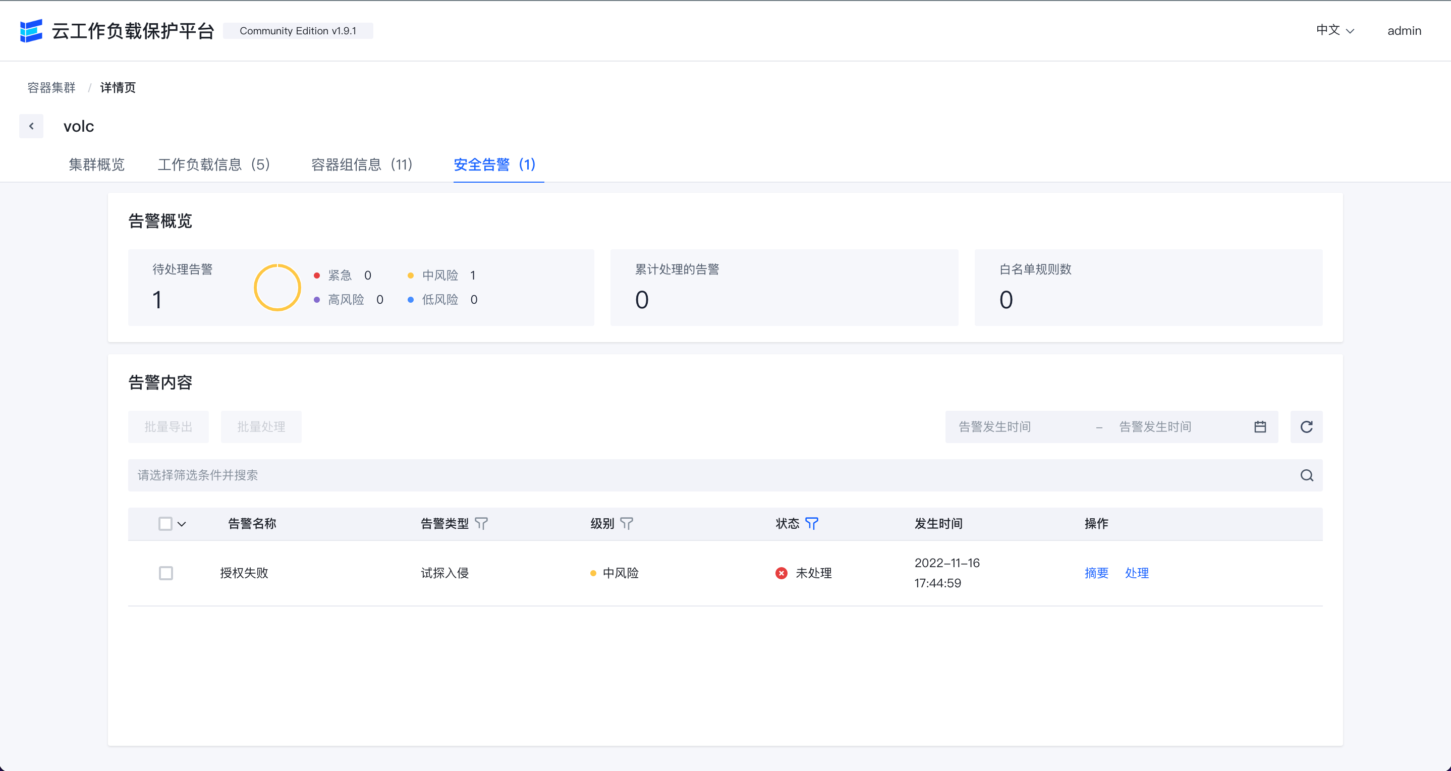 **入侵告警概览**