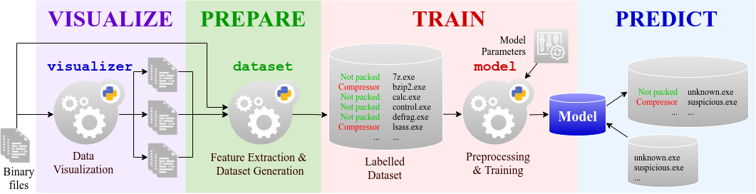 流程的 *TRAIN* 和 *PREDICT* 阶段是通过 [`model`](https://github.com/packing-box/docker-packing-box/blob/main/src/files/tools/model) 工具实现的。