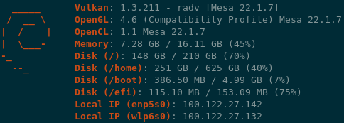 实际上,`Local IP` 模块对我个人来说是最有用的模块。我 (@CarterLi) 安装了几个 VM 来测试 fastfetch,经常需要 SSH 进去。由于 shell 启动时会运行 fastfetch,我永远不需要手动输入 `ip addr`。