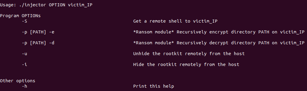 ./injector -p /Your/Path/To/Encrypt -e 127.0.0.1
