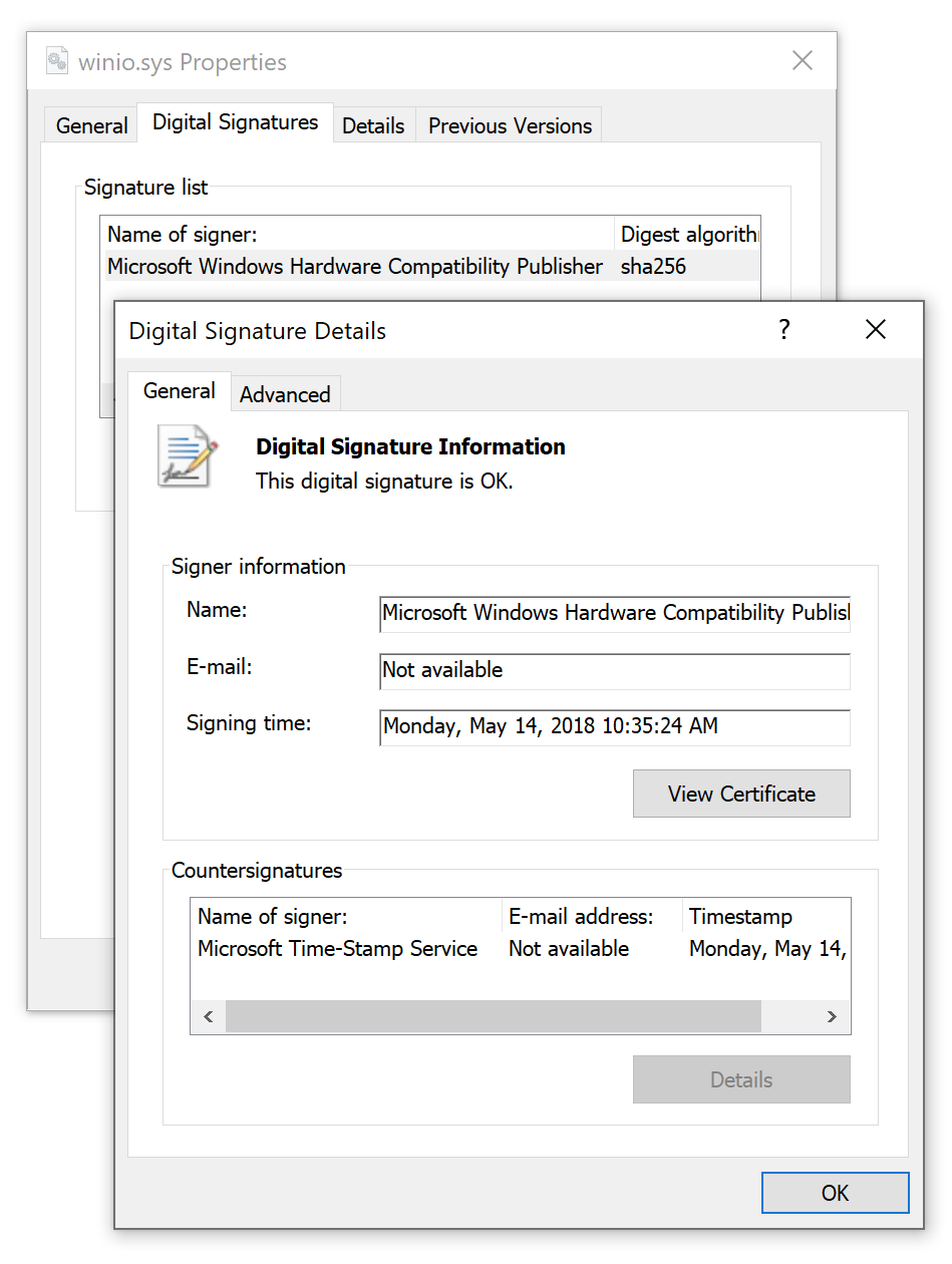 Kernel Forge 由两个主要组件组成:第一个库实现了调用任意内核函数所需的主要功能,第二个库用于委托任意内存读写原语:它可以是本地权限提升漏洞,或者只是围绕第三方 WHQL 签名的 loldriver 的封装。在这个项目中,我使用了 `WinIo.sys` 的变体,它提供完整的物理内存访问,并且在启用 HVCI 的情况下也能正常工作: