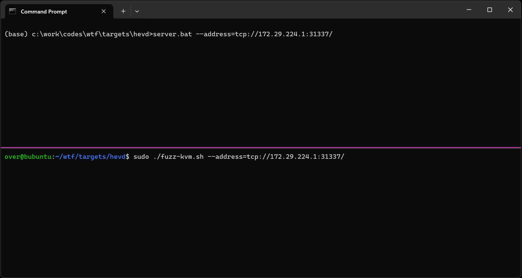 接下来的内容假设你下载了附在最新版本中的 [target-hevd.7z](https://github.com/0vercl0k/wtf/releases) 文件,并将其解压到了你克隆的 **wtf** 的 `targets` 目录中。你应该拥有 `wtf/targets/hevd`,其中包含 `inputs` / `outputs` 等目录。