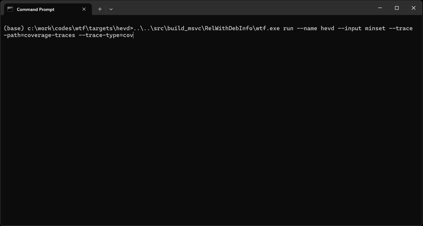 wtf.exe run --name hevd --input minset --trace-path=coverage-traces --trace-type=cov