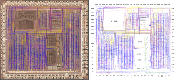 叠加层 SVG 图像包含裸片照片中单元的轮廓,并突出显示连接单元的所有导线。此外,单元标有与原理图中相同的名称。
