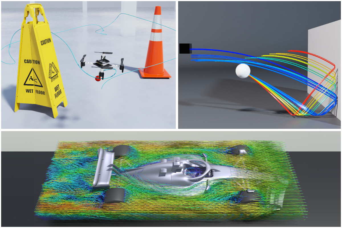 A selection of physical simulations computed with Warp