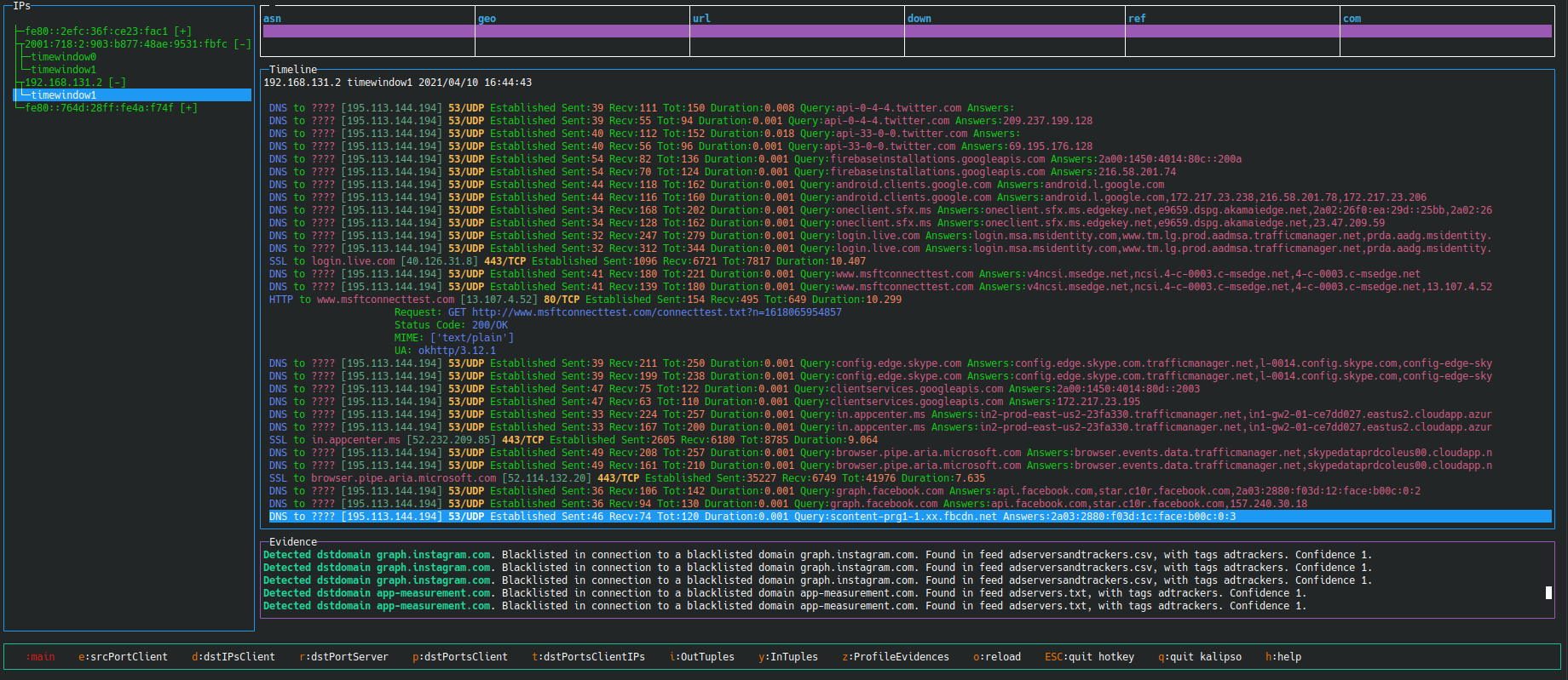 * **图形用户界面**:Slips 提供控制台图形用户界面 (Kalipso) 和 Web 界面,用于通过图形和表格显示检测结果。