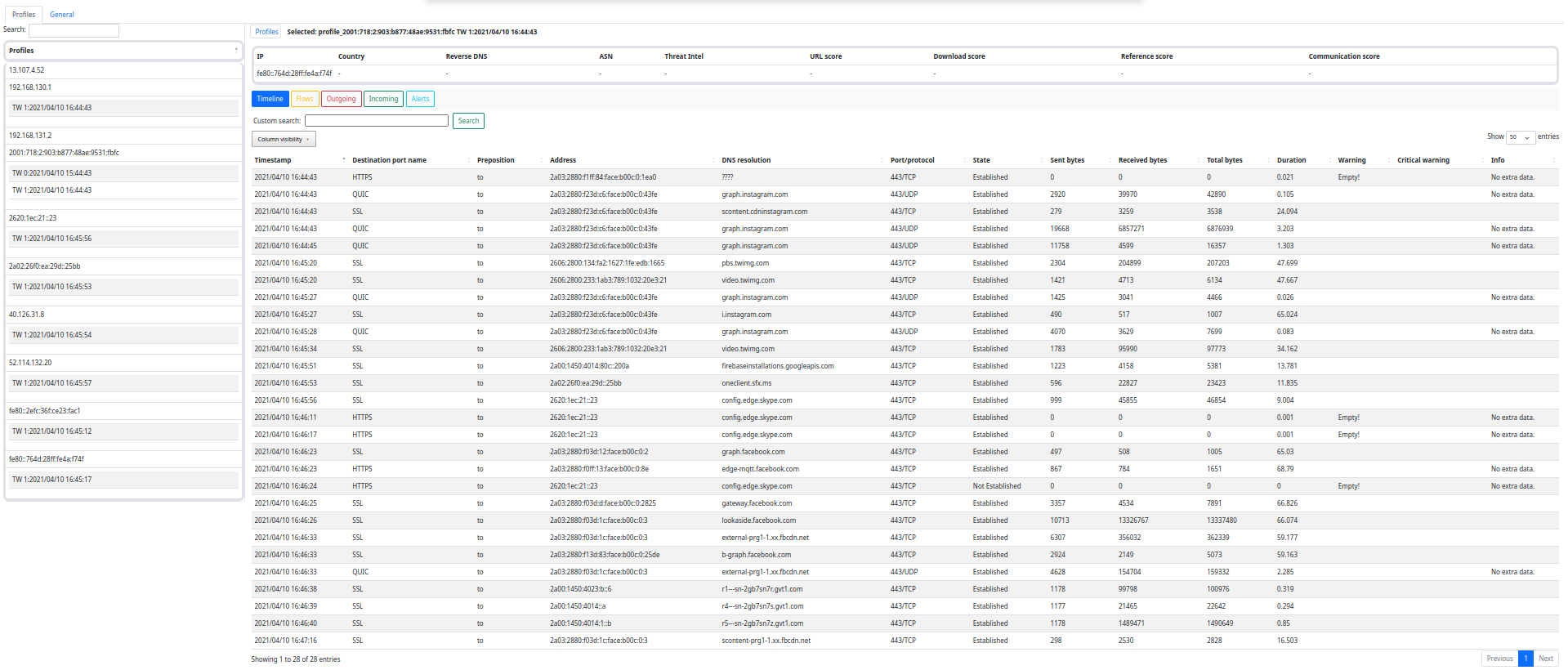 * **与外部平台集成**:Slips 中的模块可以在 VirusTotal 和 RiskIQ 等外部平台上查找 IP 地址。