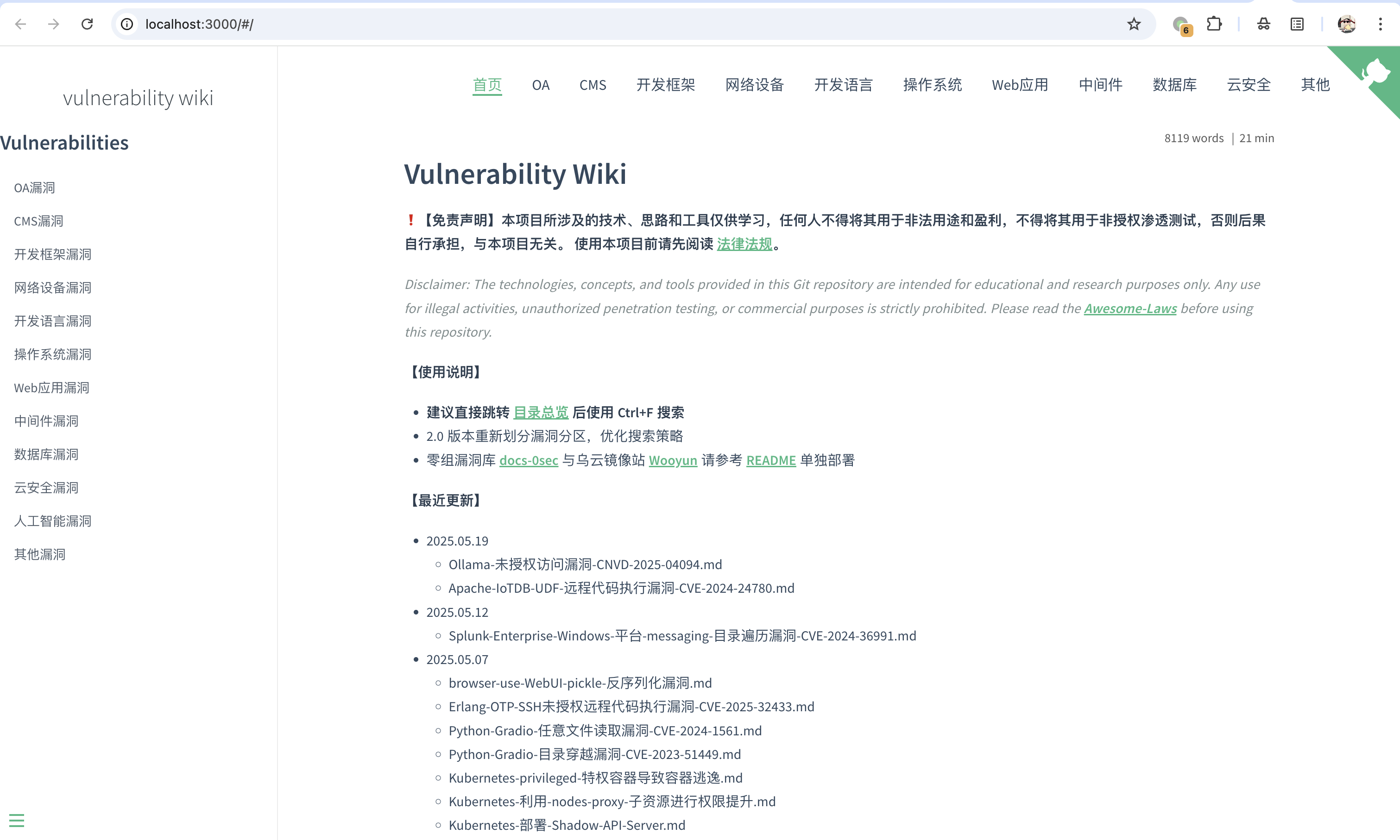 cd ./Vulnerability-Wiki/docs-0sec
