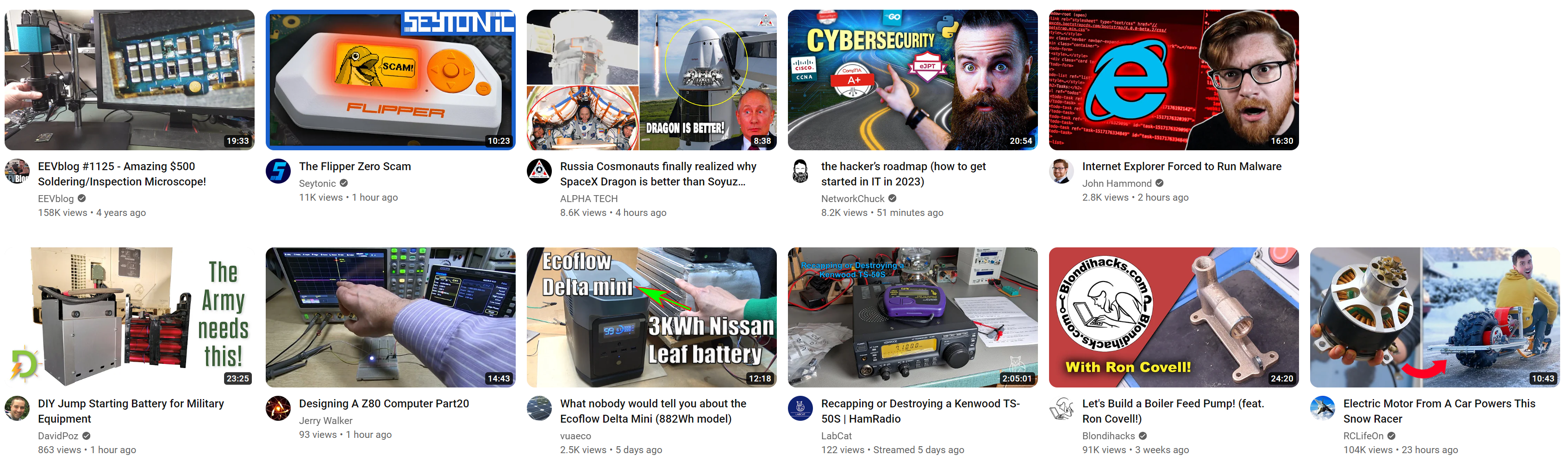 一个按技术领域分类整理的YouTube频道推荐列表,涵盖电子、机械、网络安全、嵌入式系统等多个工程学科的优质教程资源。