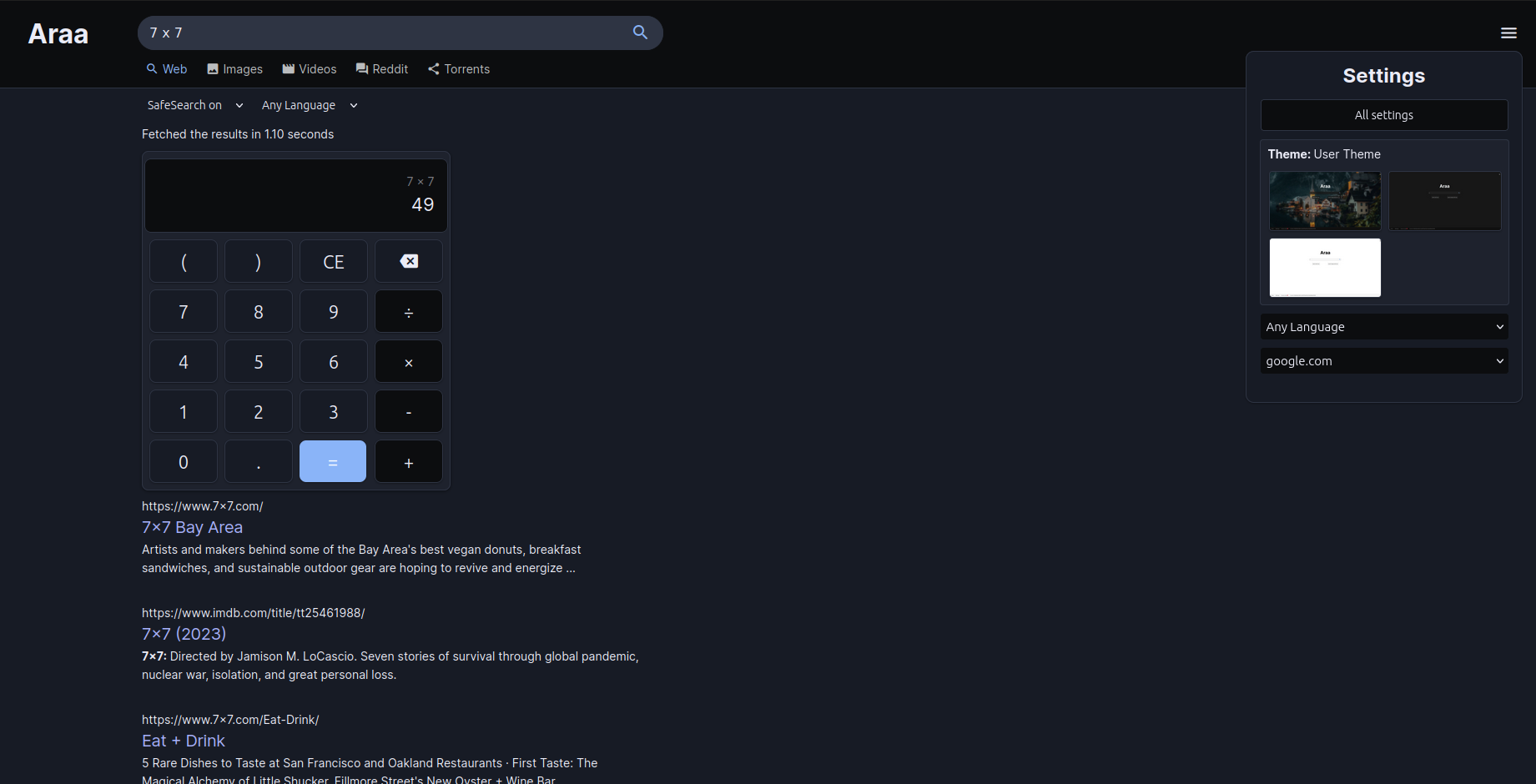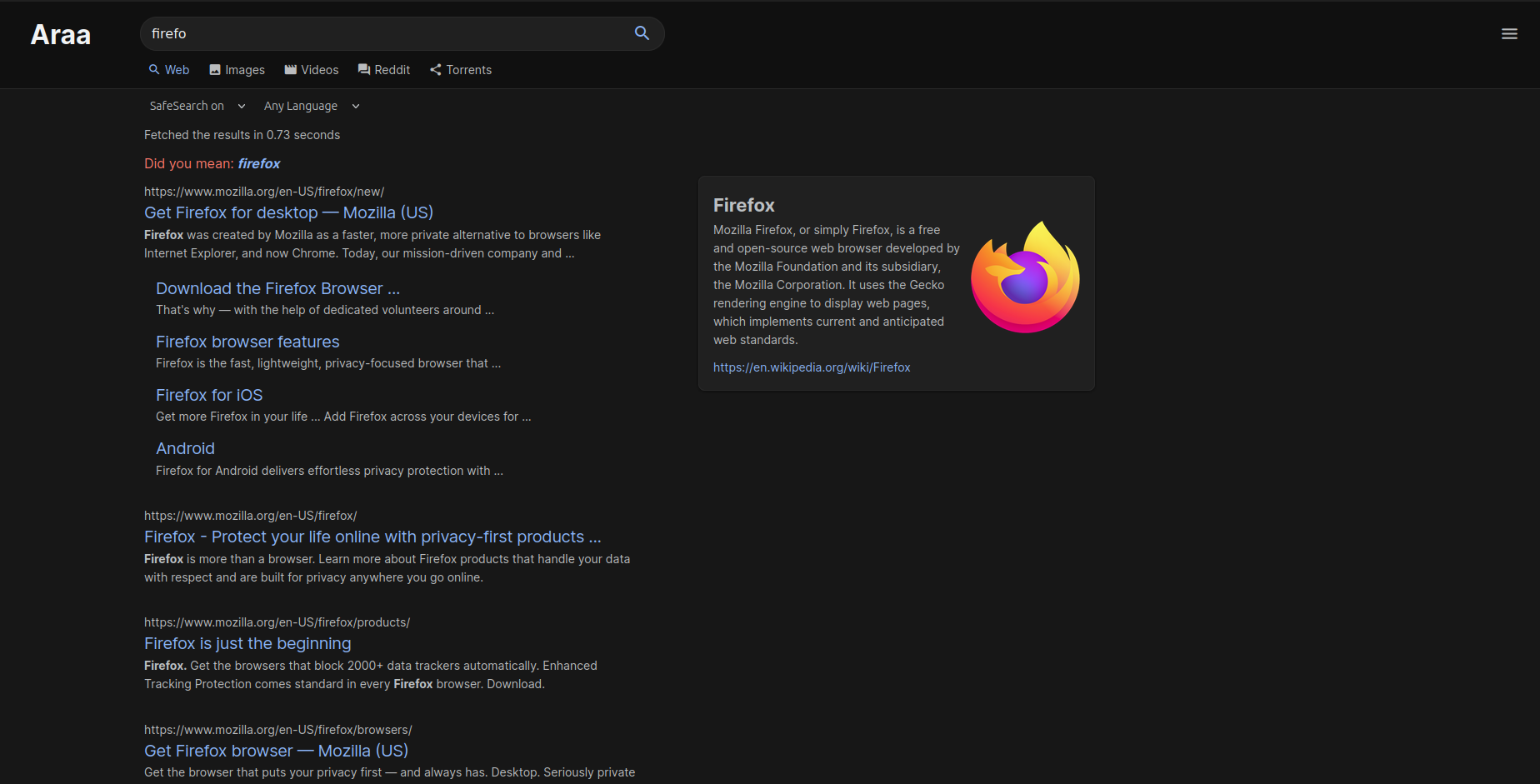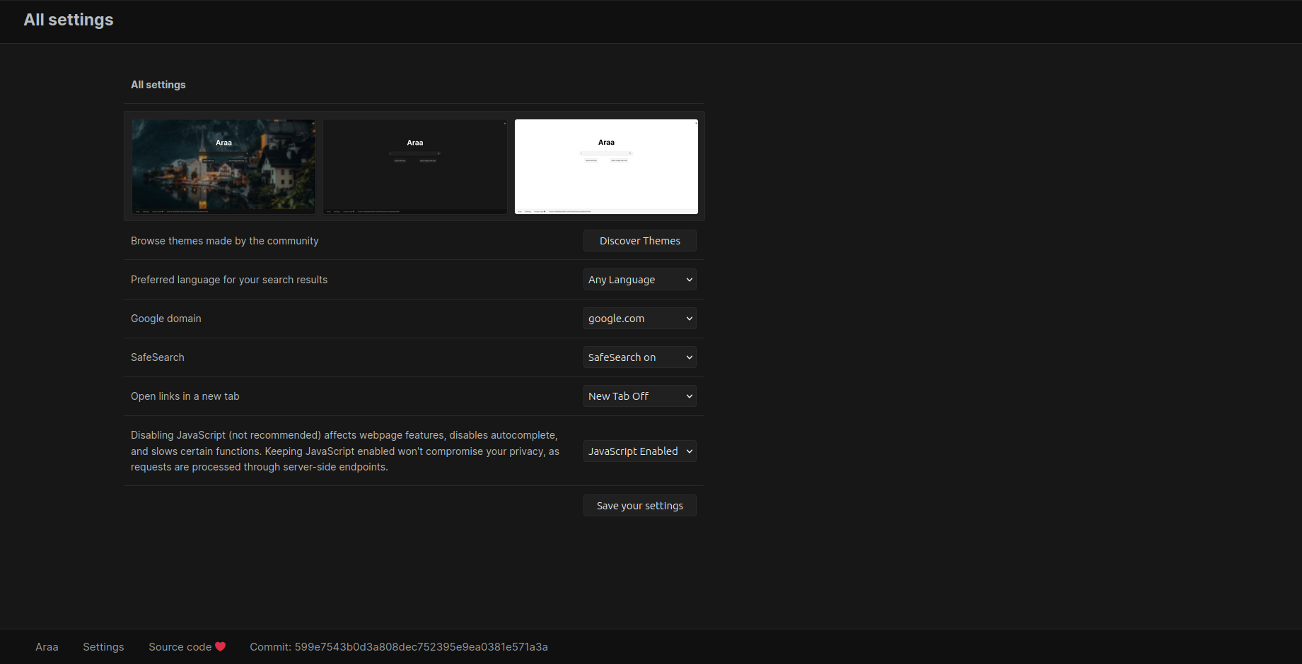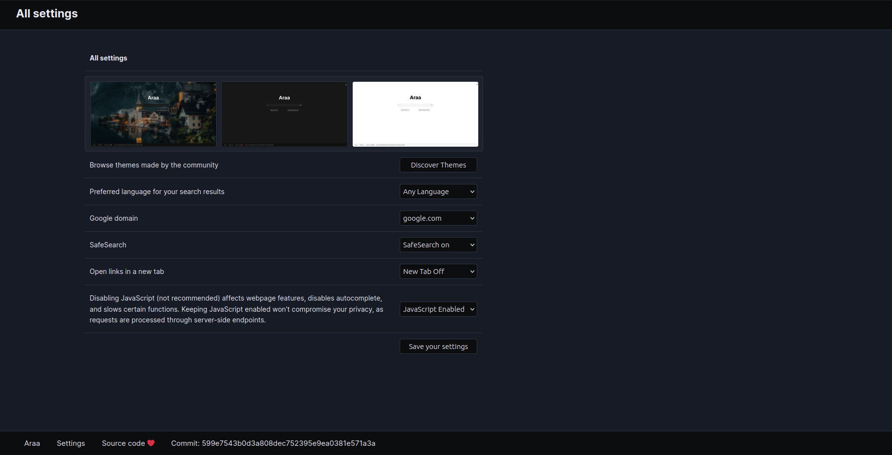 [](https://github.com/Extravi/araa-search) [](https://github.com/Extravi/araa-search/blob/main/LICENSE) [](https://github.com/Extravi/araa-search/stargazers) 如果您想[安装](https://extravi.dev/extravi.github.io.legacy/araa) Araa,这里有一份相关的操作指南。 ### 实例 | Clearnet | Tor | SSL | 国家/地区 | 状态 | |-|-|-|-|-| | [araa.extravi.dev](https://araa.extravi.dev/) | N/A | [www.ssllabs.com](https://www.ssllabs.com/ssltest/analyze.html?d=araa.extravi.dev)✅| 加拿大 🇨🇦 | 官方实例 | | [tailsx.com](https://tailsx.com/) | [链接](http://inbbfryz7elofjk23pi7txnibttnuyz3rg2vwqmfengteeyhrmvex4id.onion/) | [www.ssllabs.com](https://www.ssllabs.com/ssltest/analyze.html?d=tailsx.com)✅| 加拿大 🇨🇦 | 非官方实例 | ## 功能 以下是 Araa 作为一个尊重隐私、无广告、可自托管且具备强大安全性的 Google 元搜索引擎所提供的一些功能: * 完整的 API 支持,方便集成到第三方应用和服务中 * 使用 Qwant 进行图片搜索,该引擎以其强大的隐私保护而闻名 * 使用 DuckDuckGo 进行自动补全,提供注重隐私的搜索建议 * 托管在您自己的服务器上,让您完全掌控自己的数据并确保隐私安全 * 实施了强大的安全措施,包括 SSL 加密和防火墙 * 搜索结果无广告,不进行任何旨在用于广告目的的跟踪或数据收集 ## 截图