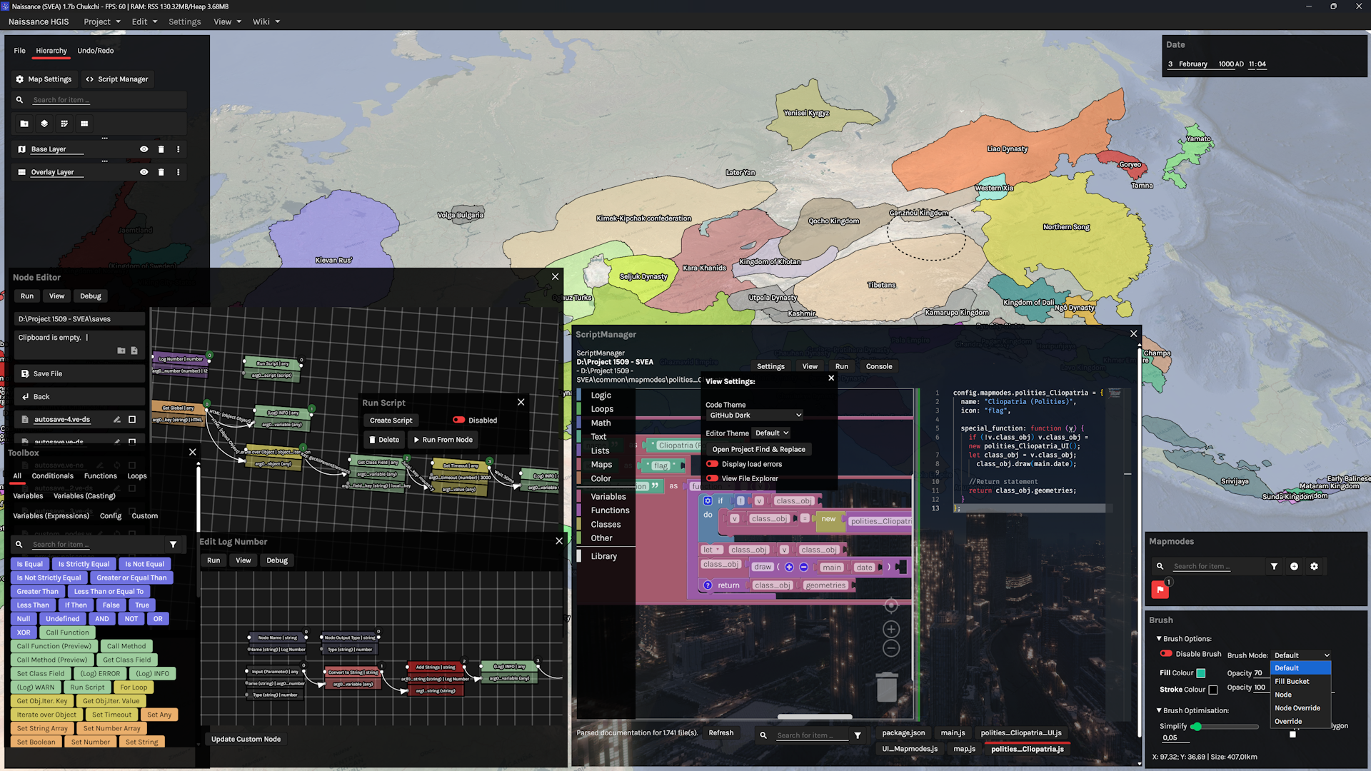 **Naissance HGIS** 是一款专注于易用性和功能性的地理空间数据 3D 地图编辑器。历史记录通过关键帧进行管理,并且一个从零开始构建的撤销/重做树系统支持分支、合并和提交。除了传统的基于矢量的编辑工具外,用户还可以创建组、图层、叠加层,并像在传统的栅格编辑程序中一样使用画笔。