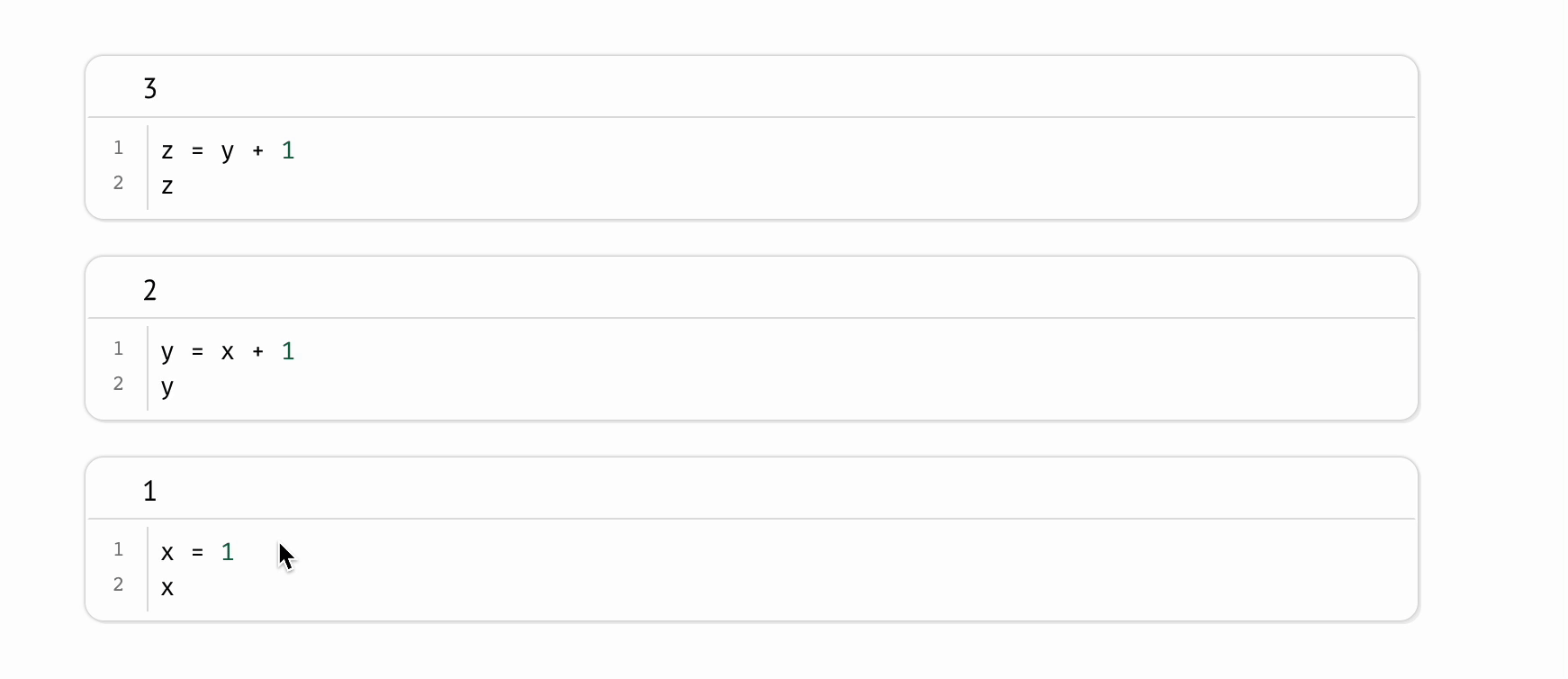 **确定性执行顺序。** Notebook 按确定性顺序执行,基于变量引用而非单元格在页面上的位置。组织您的 notebook 以最适合您想要讲述的故事。