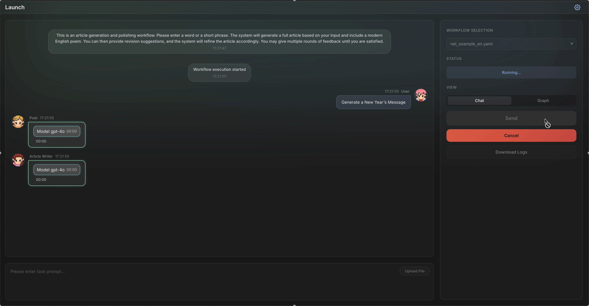 * **启动**: 启动工作流、监控实时日志、检查中间产物并提供人在环反馈。