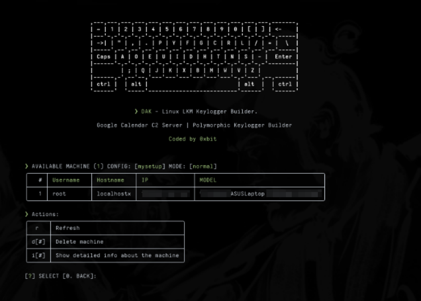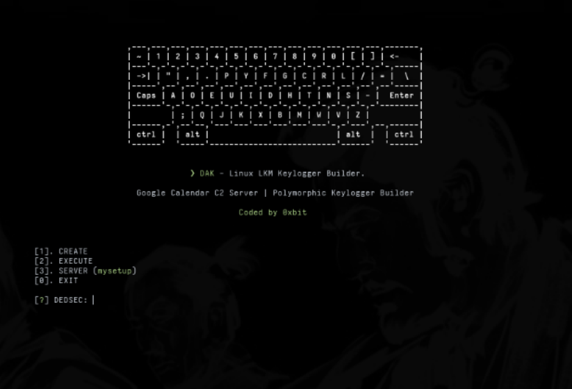 DAK (DEDSEC ADVANCED KEYLOGGER) 是一个专业级的键盘记录框架,通过可加载内核模块 (LKM) 在 ring 0(内核级别)运行。它使用 Linux 输入子系统直接从键盘中断处理程序捕获击键,完全绕过用户空间检测机制。该模块将捕获的数据写入内存以进行隐蔽存储。该工具利用 Google Calendar 作为 C2 通信的死信箱解析器,具有可配置的信标间隔,以逃避数据包分析和基于网络的检测。
