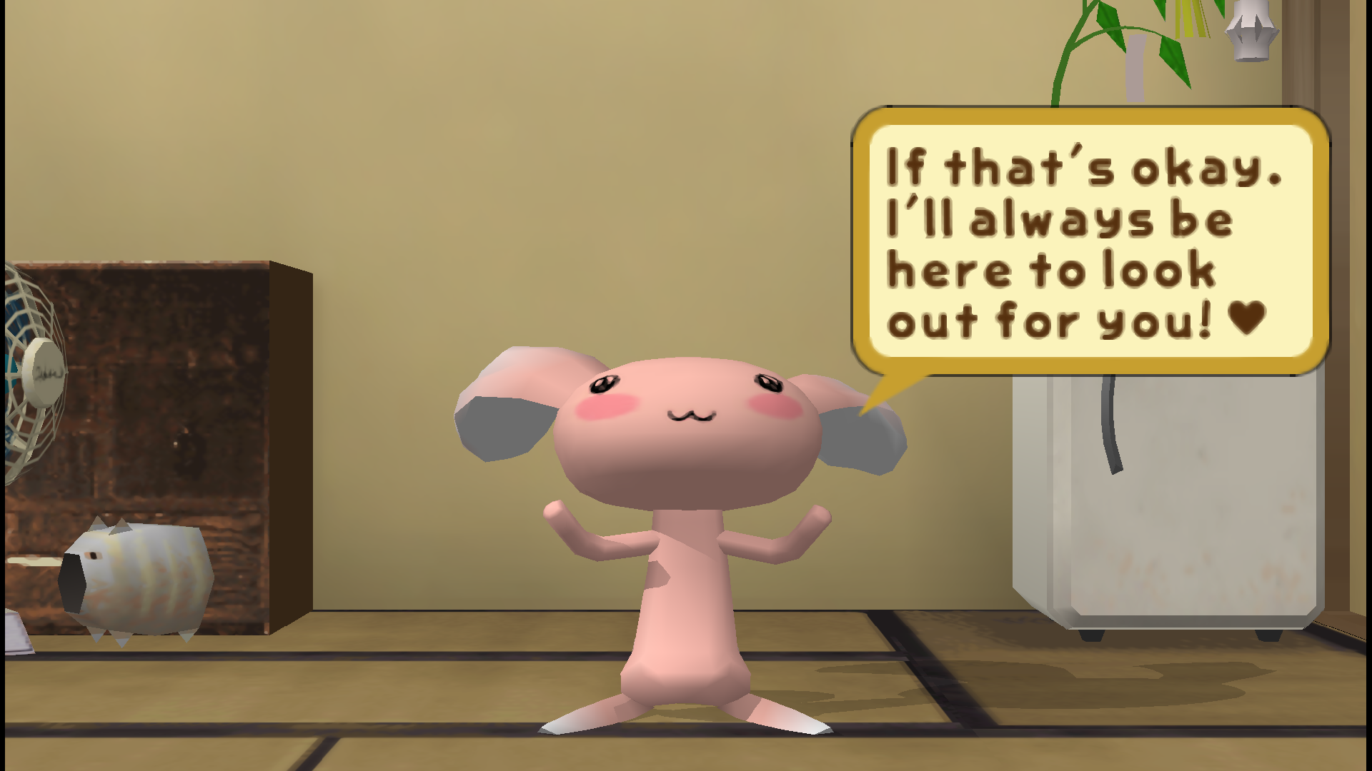 [Doko Demo Issyo](https://dokodemo.fandom.com/wiki/Doko_Demo_Issyo) 是一款生活模拟游戏,主角是可爱的动物(和机器人)角色,名为 [Pokepi](https://dokodemo.fandom.com/wiki/Category:Characters),他们希望了解人类世界。你可以选择其中一只在你的虚拟家中生活,每天与他们互动并教他们新单词,这些单词会在各种对话中被重复表达出来。该游戏在日本取得了巨大成功,催生了许多续作,并且主角 [Toro Inoue](https://dokodemo.fandom.com/wiki/Toro_Inoue) 已成为 [PlayStation 吉祥物](https://www.youtube.com/watch?v=0x8Tgm9s068) 和 [网络迷因](https://knowyourmeme.com/memes/toro-inoue-sony-cat)。