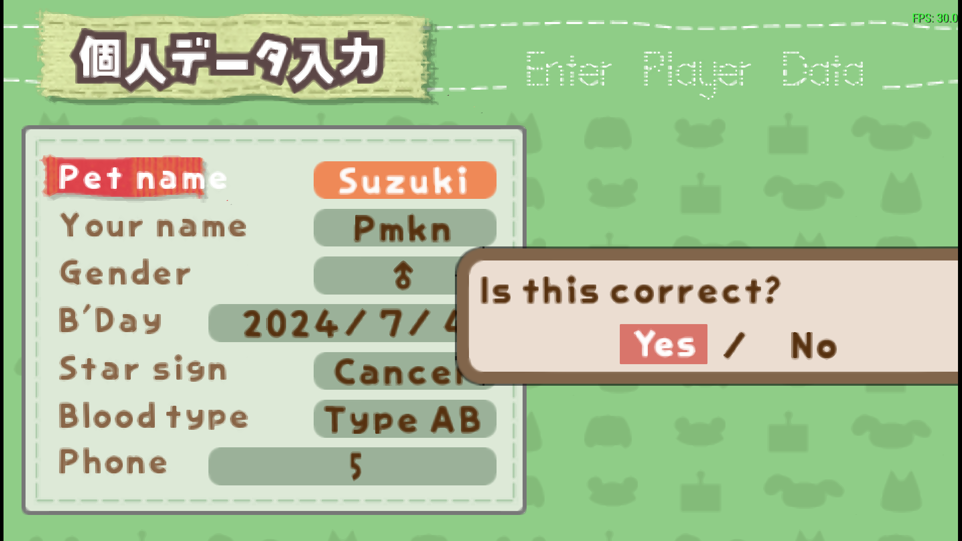 | 键盘 | 可玩 | 已将英文字母植入游戏内的日文键盘,允许你在玩家数据屏幕上输入 4 个字母长度的英文名称。键盘按钮上仍可能显示平假名/片假名。 |