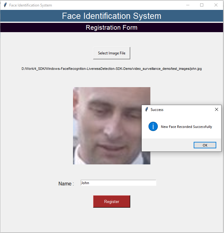 | 3 | [Video Surveillance Demo](https://github.com/recognito-vision/Windows-FaceRecognition-FaceLivenessDetection/tree/main/video_surveillance_demo) | Video Surveillance Demo,用于 1:N 识别 |