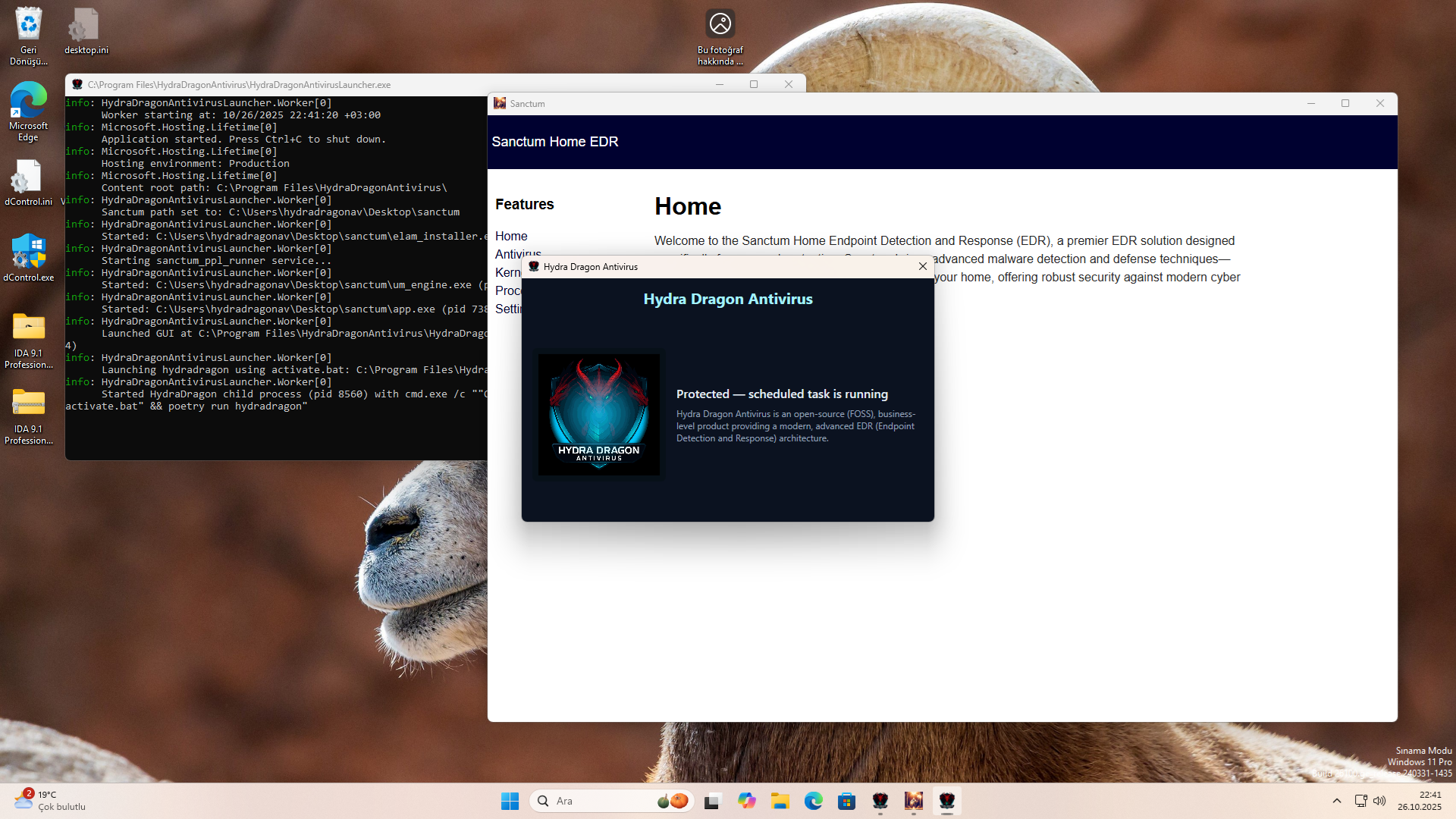 ## 重要说明与限制 ### 项目范围 HydraDragon 是一个本地杀毒软件项目,目前处于积极的实验性开发阶段。 - 它在系统本地运行。 - 目前尚未实现客户端-服务器架构。 - 旨在用于研究、学习和恶意软件分析实验。 本项目并不旨在替代您日常使用的主要杀毒软件解决方案。 ### 检测理念 - 可能会发生误报。 - 系统假设机器处于干净状态(非感染后状态)。 - 项目优先考虑深度分析而非速度。 - 目标是长期的检测改进,而不是快速但浅显的检测。 - 这并不意味着该项目达到了 99% 的检出率——这仅反映了开发理念。 ### 实验状态 - 这是一个高度实验性的项目。 - 早期版本的一些架构决策并非最佳,影响了稳定性。 - 项目正在积极改进和完善中。 - 请谨慎使用。 ### 样本检测策略 - 非常旧的恶意软件样本可能无法被检测到。 - 签名退役参考: https://blog.clamav.net/2025/12/clamav-signature-retirement.html - 显示为垃圾数据或完全未知数据的文件可能会被有意忽略。 - 如果 PE header 被移除,某些检测引擎可能不再标记该文件。 - 根据规则逻辑(例如,不验证文件类型的规则),YARA 检测仍可能触发。 示例: 移除 PE header 的样本: https://www.virustotal.com/gui/file/9b7e921e971fe7523ba83a4599b4006ad214854eb043372129e4f5a68c5a427f 原始样本: https://www.virustotal.com/gui/file/1ef6c1a4dfdc39b63bfe650ca81ab89510de6c0d3d7c608ac5be80033e559326 ### 安装与使用说明 - 您必须手动卸载软件(自动卸载程序不可用)。 - 安装过程中出现的临时 ClamAV 更新错误可以安全忽略。 - 如果驱动程序安装失败,请禁用 Secure Boot 并重试。 - 建议等待杀毒软件界面完全加载,即使某些防护功能似乎已处于活动状态。 ### 进程保护 - 杀毒软件可以由用户手动终止。 - 恶意软件进程无法终止它,因为驱动程序会验证终止请求的来源。 - 如果您手动关闭它,这并不表示安全失效。 ### 隔离目录 C:\ProgramData\HydraDragonAntivirus\Quarantine ## 描述 在此阶段: - 应用程序**仅在本地工作**。 - **客户端-服务器架构尚未实现**。 - 功能可能不完整或不稳定。 - 可能随时发生破坏性变更,恕不另行通知。 - 本项目**尚未准备好投入生产环境**,应仅用于开发和测试目的。 - 针对 Windows 的动态和静态分析实时恶意软件/可执行文件分析平台,包括开源 XDR(2 个 EDR 项目)、ClamAV、YARA-X、机器学习 AI、行为分析、Unpacker、Deobfuscator、Decompiler、网站签名、Ghidra、Suricata、Sigma、基于 Kernel 的保护等超乎想象的功能。 - HydraDragonPlatform - 统一可执行文件分析与检测框架 ## 许可证 本项目基于 **GNU Affero General Public License v3.0** (AGPLv3) 授权。 有关更多信息,请参阅 [LICENSE](./LICENSE) 文件。 ## 下载机器学习恶意软件与良性数据库 - **恶意软件数据库:** [下载链接](https://drive.google.com/file/d/1QwdxdwX_nH-oF-5hVTkbTuFkrwUfR0-h) - **良性数据库:** [下载链接](https://drive.google.com/file/d/12L1s4FC3tGmxhrzi_Q1VTgPy6l7S4Hwe) (目前已过时,我有 20.4 万个样本,还有 JavaScript 样本) - **注意:** 该集合仅包含小于 10MB 的 PE 文件。由于我的 U 盘损坏且无法恢复,大约 6,000 个良性样本永久丢失。其中一些样本甚至在 VirusTotal 上都找不到。 - **密码:** infected ## 机器学习训练指南 - 安装恶意软件 (datamaliciousorder) 和良性 (data2) 数据库,然后从 train.py 安装 requirements.txt,并在包含 datamaliciousorder 和 data2 的同一文件夹中运行 train.py。 - 然后删除 results.pkl 并将 ml_definitions.pkl 重命名为 results.pkl 以合并 pickled 数据。 ## 从源代码编译指南 - 这是一项非常复杂的任务。我需要为此创建 wiki。请联系我。 ## Ghidra 源代码 - 我现在使用的是 11.4.3 版本:https://ghidra-sre.org/ ## Java Development Kit - 请查看 https://www.oracle.com/java/technologies/downloads/#jdk21-windows ## 安装设置 - 发布版中的安装文件 HydraDragonAntivirus.exe ## Ghidra - Ghidra: %ProgramFiles%\aHydraDragonAntivirus\hydradragon\ghidra - Ghidra 运行: %ProgramFiles%\aHydraDragonAntivirus\hydradragon\ghidra\ghidraRun.bat - Ghidra 脚本: %ProgramFiles%\aHydraDragonAntivirus\hydradragon\scripts ## Sigma-HQ - Hayabusa - https://github.com/Yamato-Security/hayabusa/releases/tag/v3.8.1 (hayabusa-3.8.1-win-x64.zip) ## 重要提示 - 重启程序时,任何日志都将被删除。所以要小心! - 分析结束后,您必须重启程序。 - 请勿在日志中分享您的 IP。 - 确保 ClamAV 数据库安装无问题。 - 我们强烈建议您拍摄快照,并在完成工作后恢复。 - 将您的用户名设为 hydradragonav(例如,以避免反分析)。 - 由于 ClamAV 数据库下载存在问题,安装程序还包含 daily.cvd、main.cvd、bytecode.cvd。 ## Discord 社区服务器 - 服务器链接:https://discord.gg/Rdyw59xqMC ## 准备环境 - 创建大量文件以检测勒索软件。 ## 指南 **注意 1:**。 - 在 Windows 防火墙上允许 Java,因为它将反编译 PE 文件。 **注意 2:** - 如果发现问题,请创建 issue。杀毒软件可能会被网站签名触发,因为它们没有经过混淆,所以请排除 `%ProgramFiles%\aHydraDragonAntivirus\hydradragon` 文件夹。由于存在风险,请仅在虚拟机 (VM) 中使用。 **注意 3:** - https://github.com/icsharpcode/ILSpy - https://github.com/extremecoders-re/nuitka-extractor - https://github.com/horsicq/Detect-It-Easy - https://github.com/extremecoders-re/decompyle-builds - https://github.com/mandiant/gostringungarbler - https://github.com/cod3nym/Deobfuscar - https://github.com/Vineflower/vineflower - https://github.com/GDATAAdvancedAnalytics/de4dotEx/releases/tag/3.2.4 - https://www.rathlev-home.de/index-e.html?tools/prog-e.html#unpack - https://