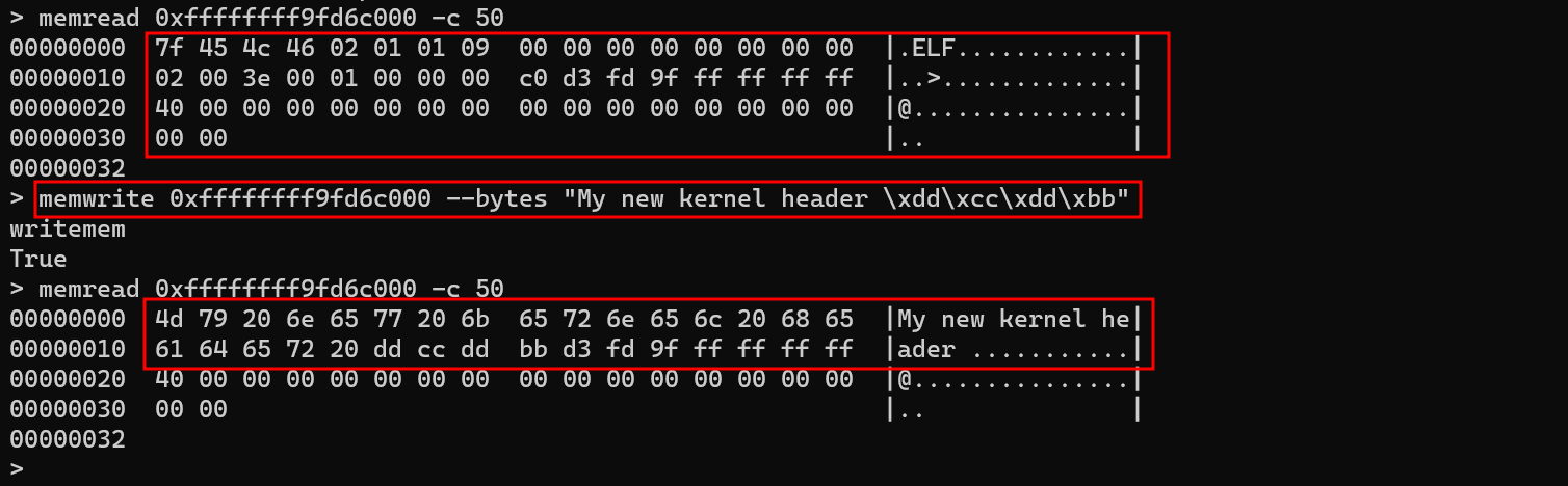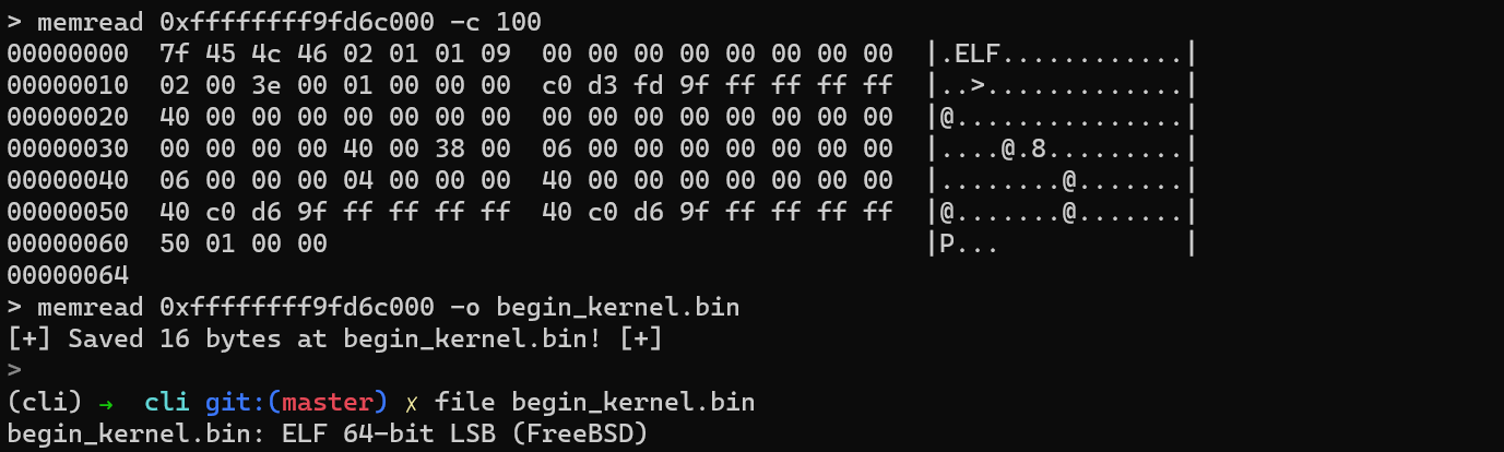 有了 `memread`,事情就开始步入正轨了。此命令允许你读取内存内容,并包含用于将数据转储到磁盘或将其显示为 hexdump 的修饰符。可用的修饰符有: