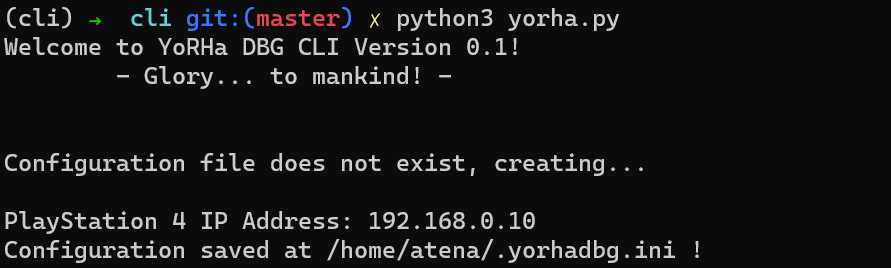 在首次使用时,YoRHa 会创建一个简单的配置文件,其中包含你的 PS4 主机地址:
