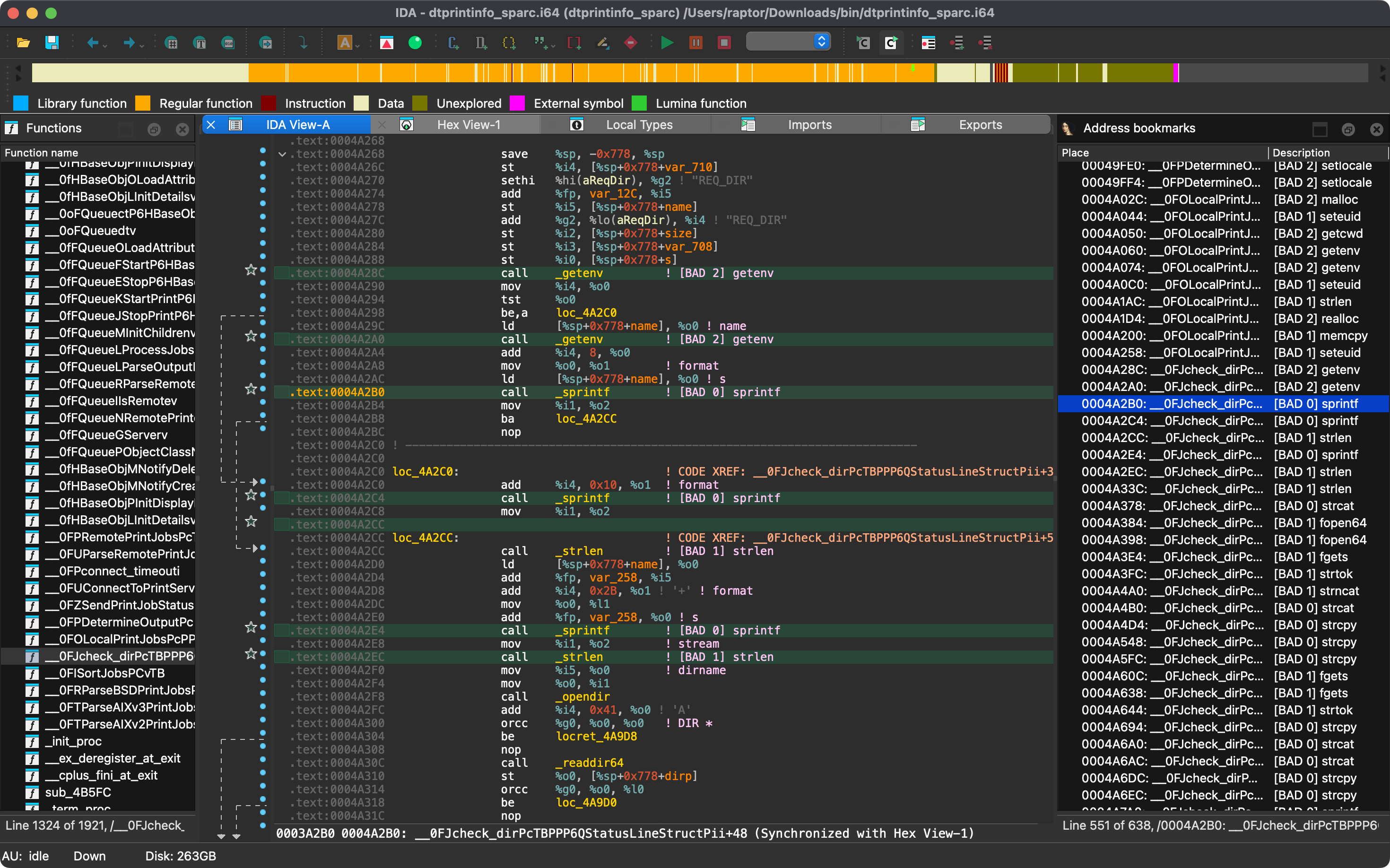 * 不安全的 API 函数调用位置将打印到 stdout 并在 IDB 中标记。