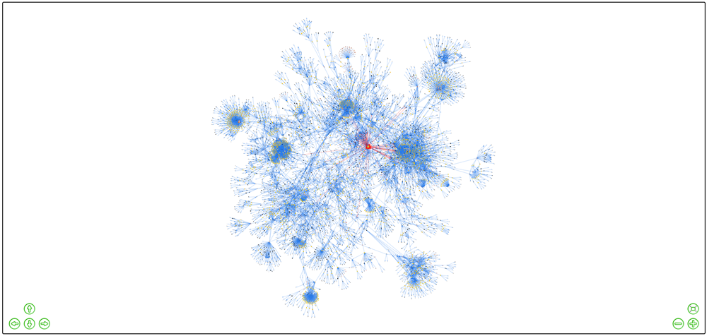 ### 激活透明模式 * **t 键** --> 按节点类型激活透明模式,允许交替查看 15 种图谱节点图像类型(按 17 次)。 * **F5 键** --> 重新加载页面,在与之前不同的位置显示图谱。 * **T 键** --> 按连接激活透明模式。将鼠标指针放在节点上以查看其连接和相邻节点。 * **F5 键** --> 重新加载页面,在与之前不同的位置显示图谱。