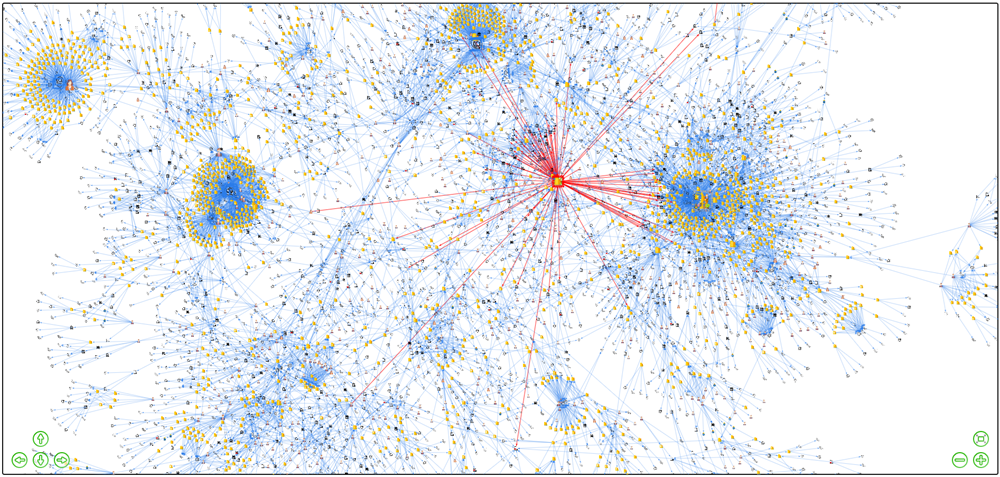 ### 使用键盘选择节点 * **A 键** --> 同时选择图谱中的所有节点。 * **, 键** --> 打开包含所有选定节点标签的窗口,按节点类型分隔。尝试在窗口中使用 Ctrl + f 进行搜索。 * **a 键** --> 选择与当前选定节点相邻的节点。选择一个只有一条边的节点并按“a”键,直到选中图谱中的所有节点。最后,所有节点都被取消选择。 * **c 键** --> 在放大选定节点和将其相邻节点放入屏幕之间切换。在图中选择一个节点并按 c 键 2 次。当选择两个或更多节点时,将其相邻节点放入屏幕。当没有选择节点时,将图谱置于屏幕中心(与 Escape 键功能相同)。 * **i 键** --> 在选定的节点之间切换,按选择顺序放大每个节点。在图中选择 3 个节点(Ctrl + 单击)并按 i 键 3 次。 * **I 键(大写 i)** --> 反转图谱节点的选择。选择一些节点并按 I 键。 * **ç 键** --> 在只有 1 个连接的地址 (EN)、电话 (TE) 和电子邮件 (EM) 节点的选择之间切换,然后是这些相同节点有超过 1 个连接的情况,最后取消选择所有节点(按 3 次)。 * **Ç 键** --> 在连接数递增(1、2、3 等)的节点选择之间切换。按到直到所有节点都被取消选择。 * **Q 键** --> 选择目标节点(带红色边框)。 * **. 键** --> 在 15 种图谱节点图像类型之间切换选择(按 16 次)。 * ** 键** --> 在选定节点的边的源节点和目标节点之间切换选择。选择图中最大的节点并按“;”键 3 次。 * **/ 键** --> 选择在上次数据库查询中添加到图谱的节点。需要事先进行数据库查询。 * **j 键** --> 选择与选定节点共有的相邻节点。选择两个节点并按 j 键,然后按“,”键查看共有节点的标签。 * **J 键** --> 选择与选定节点不共有的相邻节点。选择两个节点并按 J 键,然后按“,”键查看不共有节点的标签。