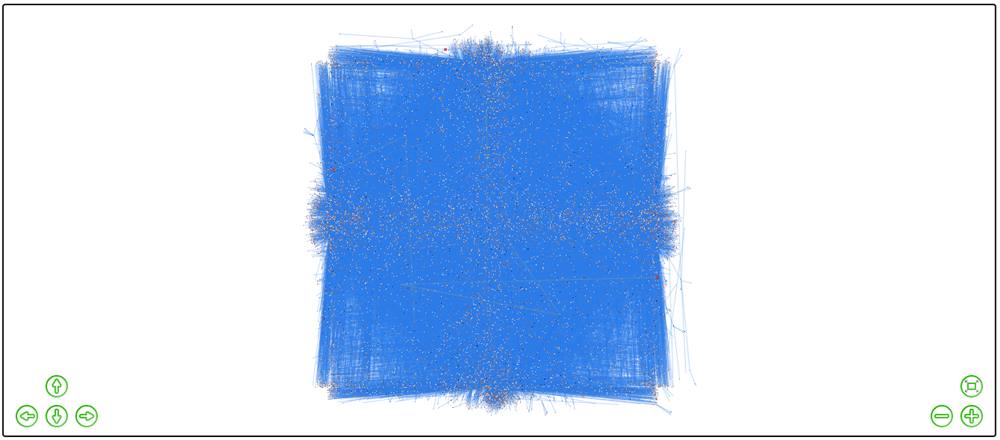 ### 调整节点质量 * **F5 键** --> 重新加载页面,在与之前不同的位置显示图谱。 * **m 键** --> 将图谱中所有节点的质量增加 0.5 单位,扩大它们之间的重力斥力(按 10 次)。节点默认质量:1。 * **M 键** --> 将图谱中所有节点的质量减少 0.5 单位,减少它们之间的重力斥力(按 10 次)。 * **U 键** --> 显示每个大小范围的节点数(范围 20 到 25、25 到 29 ... 95 到 99、100)。 * **n 键** --> 增加大于或等于参考大小(默认参考大小 = 40)的节点的质量(按 5 次)。 * **N 键** --> 减少大于或等于参考大小的节点的质量(按 5 次)。 * **Shift + 上箭头键** --> 将参考大小值增加 5 个单位。 * **Shift + 下箭头键** --> 将参考大小值减少 5 个单位。 * **] 键** --> 将选定节点的大小值增加 5 个单位。选择一个只有一条边的节点并按 ] 键 2 次。 * **[ 键** --> 将选定节点的大小值减少 5 个单位(按 2 次)。 * **空格键** --> 按与其大小成正比的方式增加节点的质量,从最大(大小 100)开始,直到最小(大小 20)(按 16 次)。