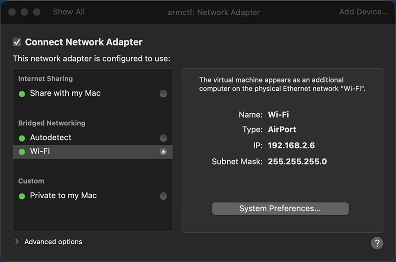 在启动虚拟机之前,不要忘记配置网络。NAT、有线桥接或 WiFi 桥接……随你选择。